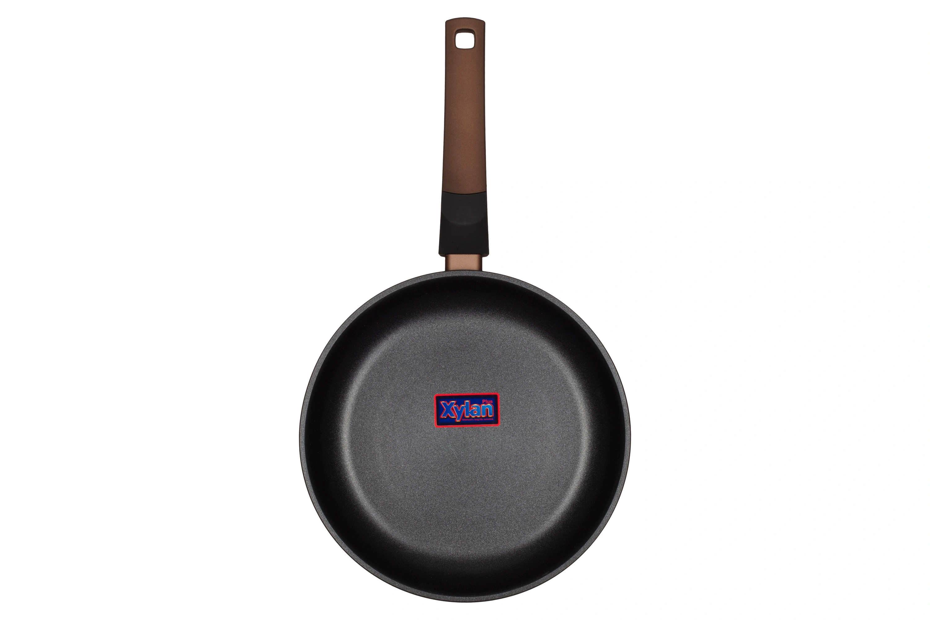 Алюмінієва сковорода Gemini коричневого кольору з багатошаровим антипригарним покриттям Xylan Plus® та термостійкою бакелітовою ручкою. Сковорода Gemini сумісна з усіма видами плит. Не придатна для використання в посудомийній машині.