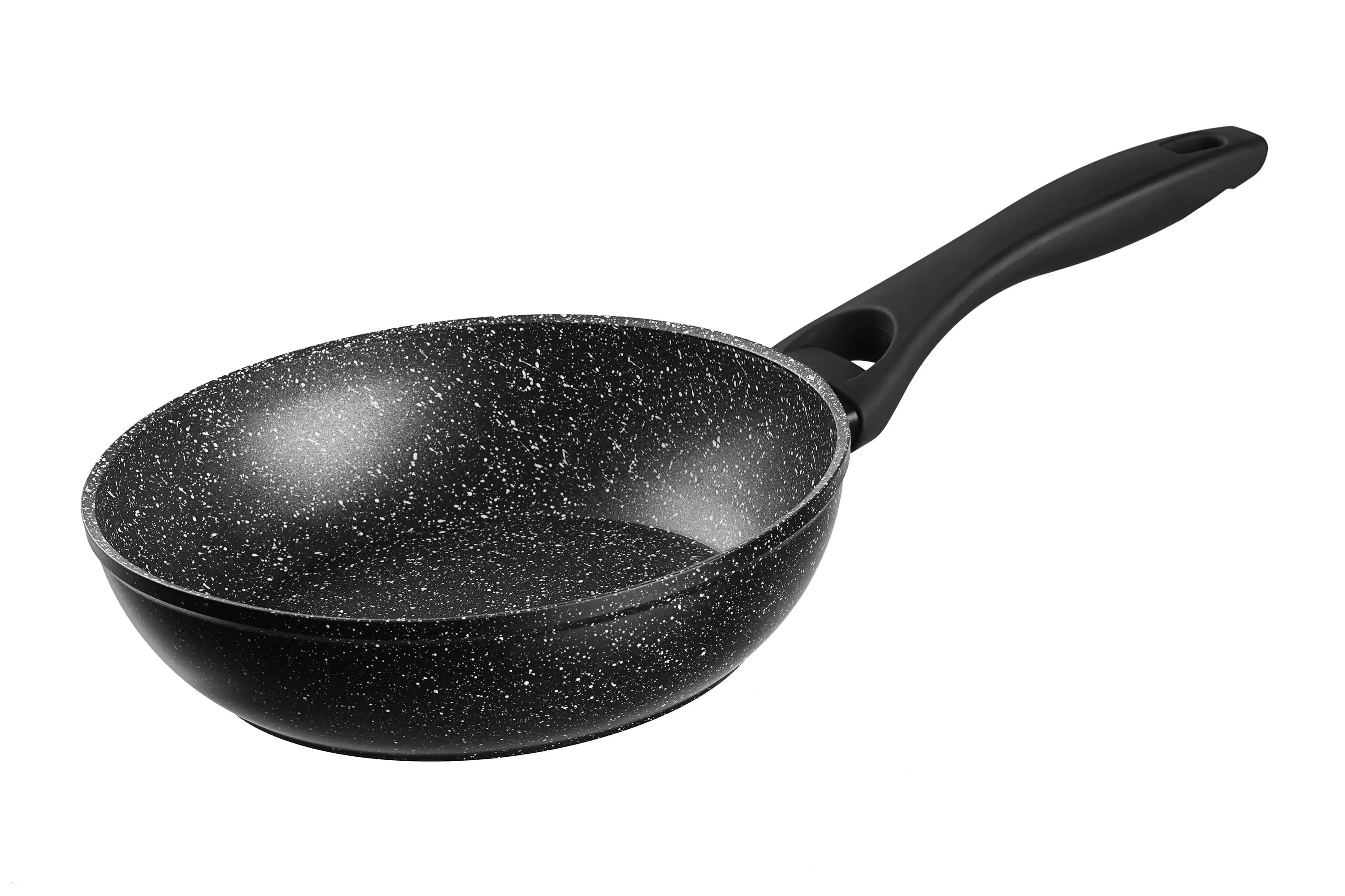 Алюмінієва глибока сковорода серії Gemini Gourmet Anzio чорного кольору з мармуровим антипригарним покриттям та термостійкою бакелітовою ручкою з Soft-touch покриттям. Сковорода сумісна з усіма видами плит, включаючи індукційну.