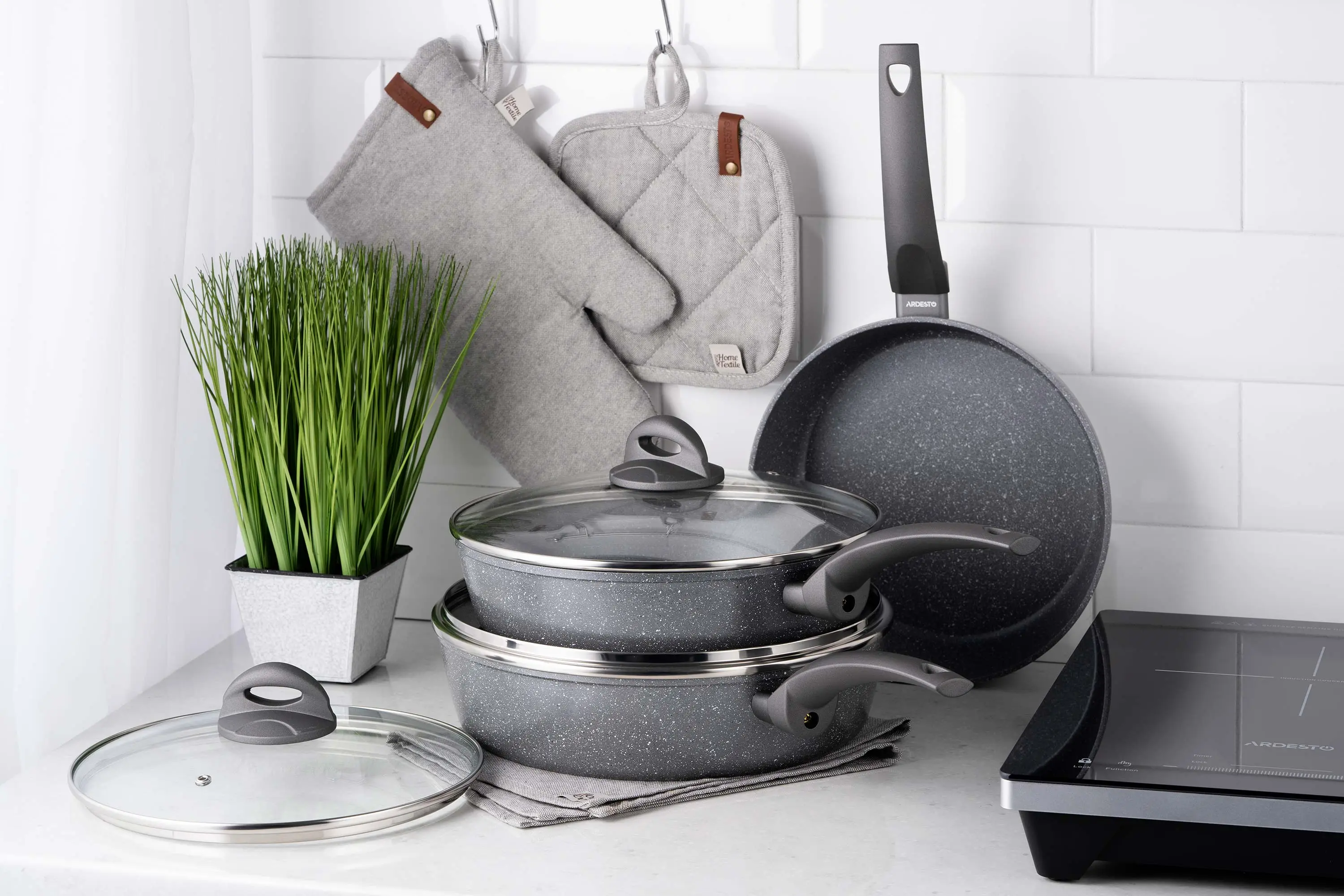 Сковорода глибока з кришкою Ardesto Gemini Gourmet Apulia, 28см, алюміній, сірий