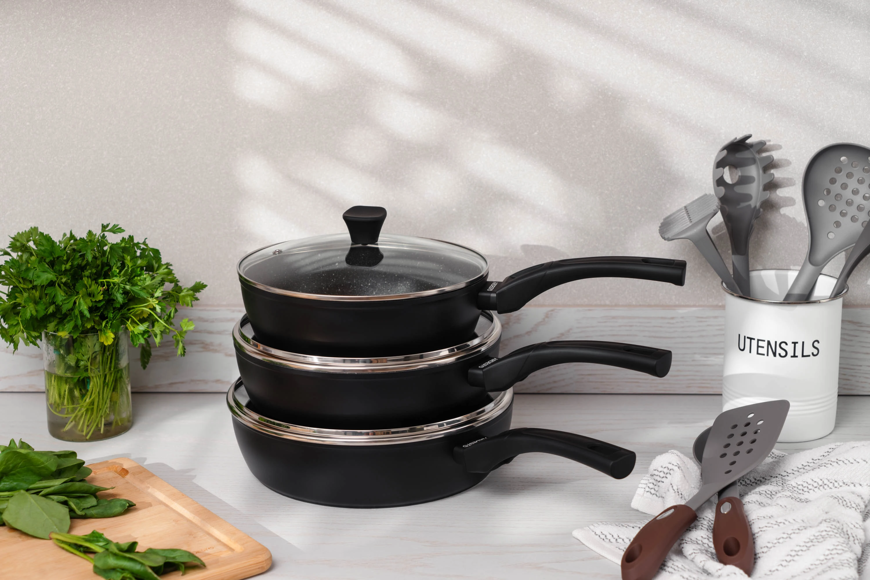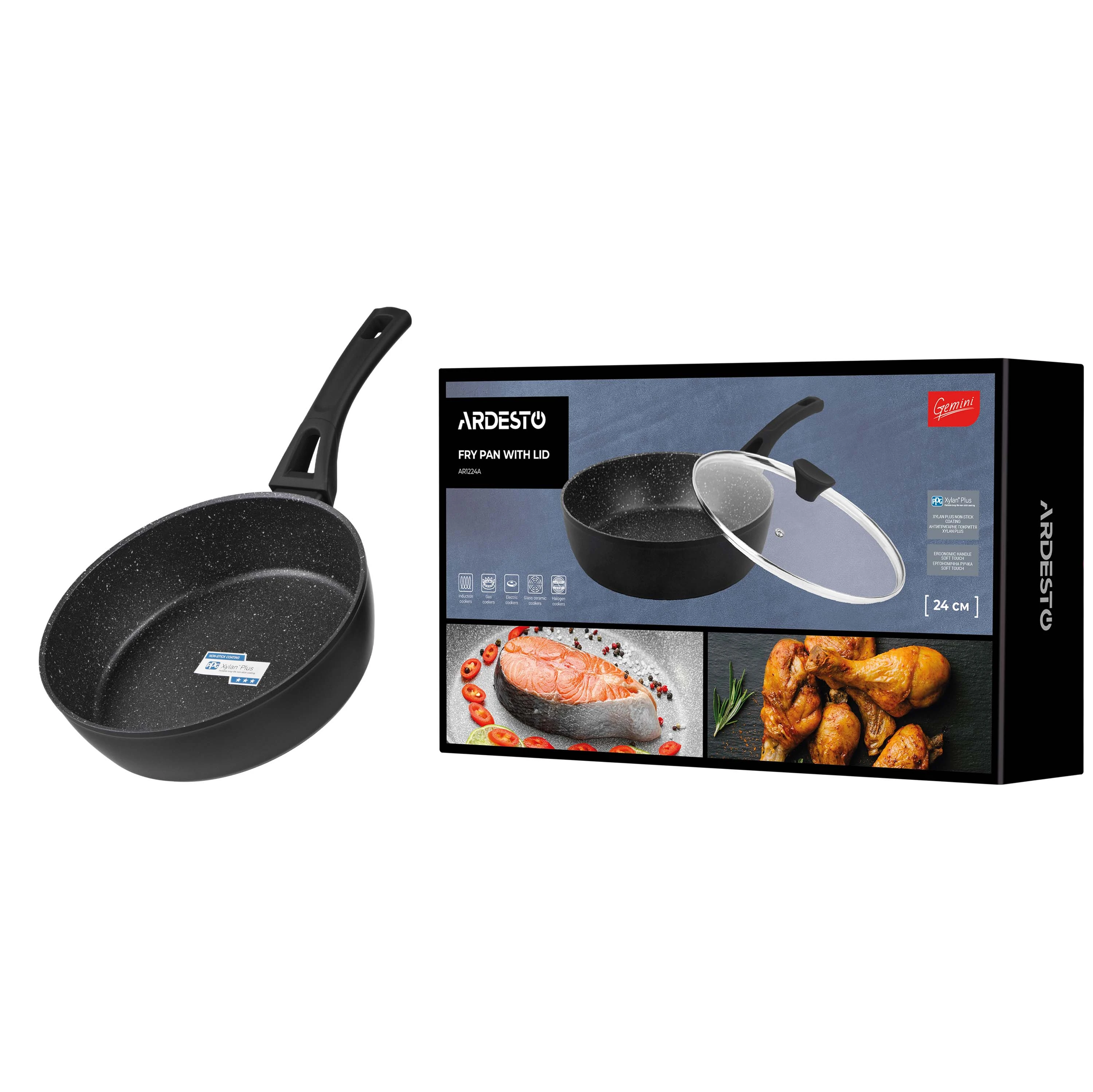 Сковорода глибока з кришкою Ardesto Gemini Livorno, 24см, алюміній, чорний