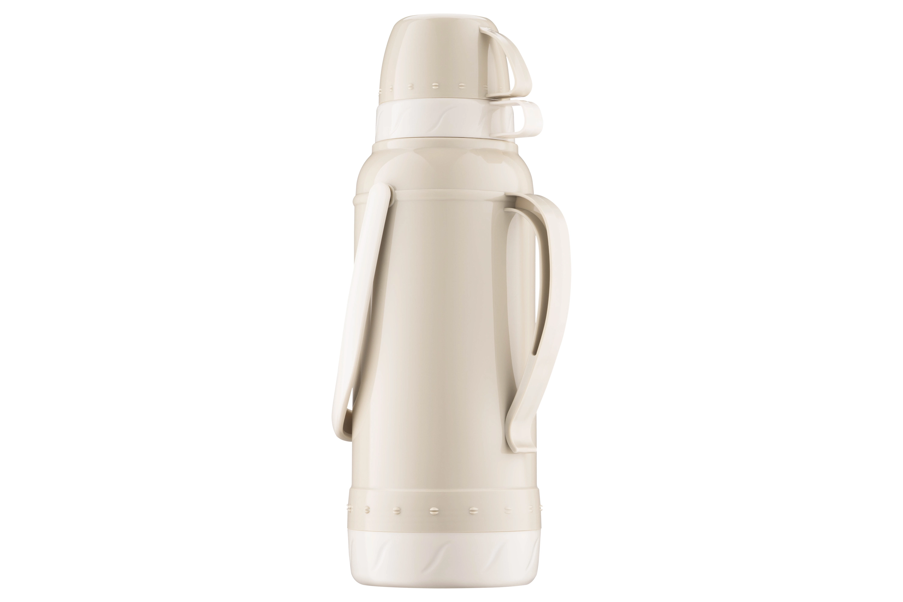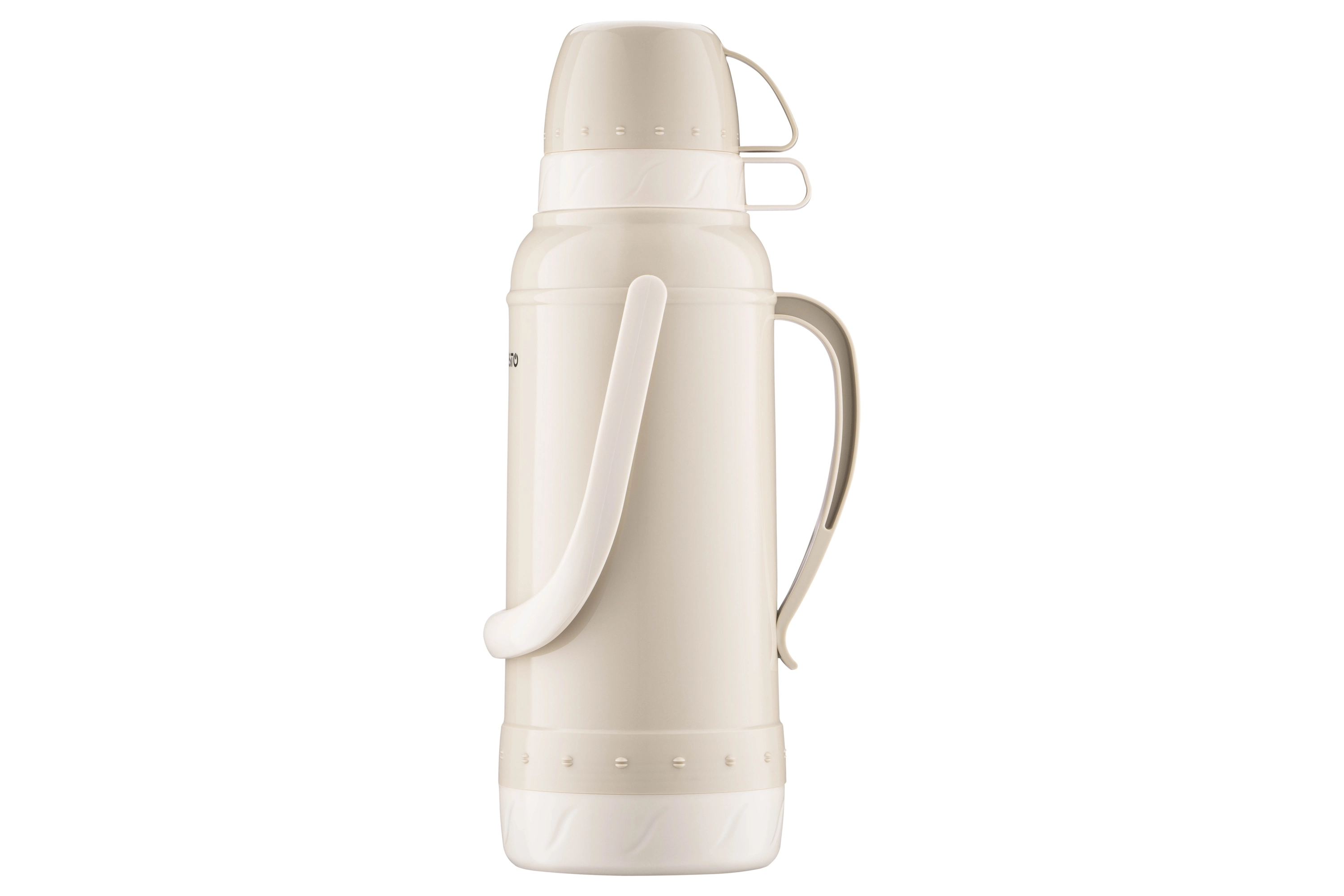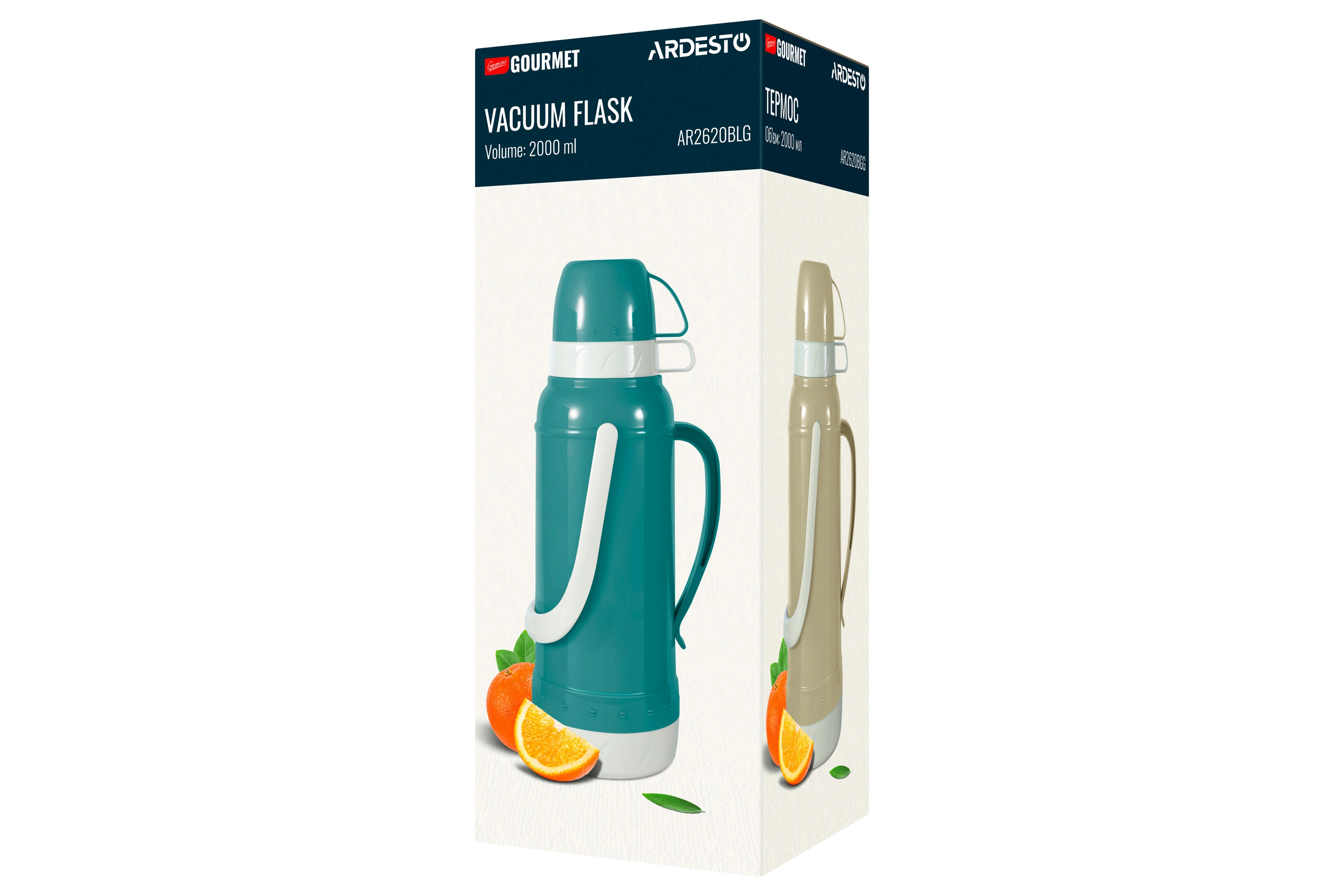 Термос ARDESTO Gemini Gourmet виготовлено з пластику бежевого кольору. Об’єм становить 2 000 мл. У комплекті 2 чашки. Скляна колба добре утримує тепло, не поглинає сторонніх запахів і не вступає в реакцію з продуктами. Термос оснащено кришкою з різьбою, що щільно прилягає, унеможливлюючи протікання та зберігаючи температуру гарячого та холодного напою 24 год. Догляд за посудом нескладний, проте мити в посудомийній машині не можна.