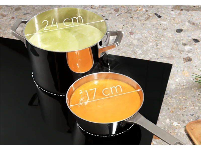 Хочете, щоб варильна поверхня автоматично виявляла каструлі та сковороди? Жодних проблем! Використовуєте каструлі та сковороди різних розмірів? Жодних проблем! Готуйте в будь-якій точці скляної варильної поверхні 600 TotalFlex