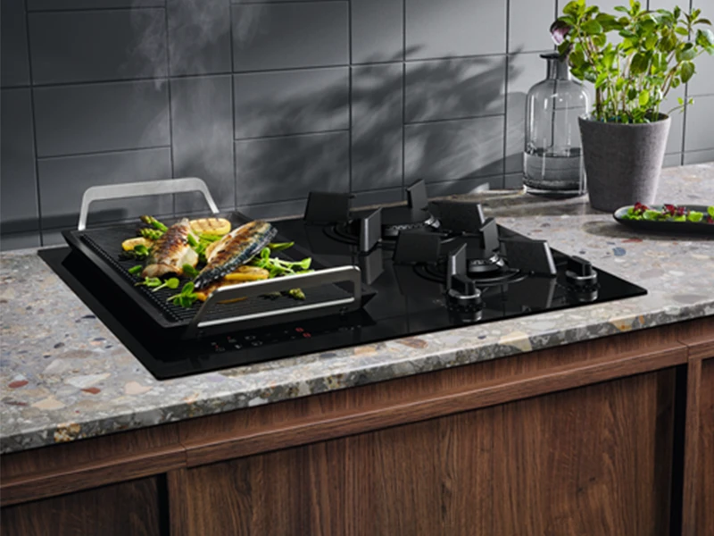 Завдяки поєднанню газових конфорок та варильних панелей зі склокераміки можна використовувати найбільш відповідний джерело нагрівання для приготування страв у будь-який момент години.