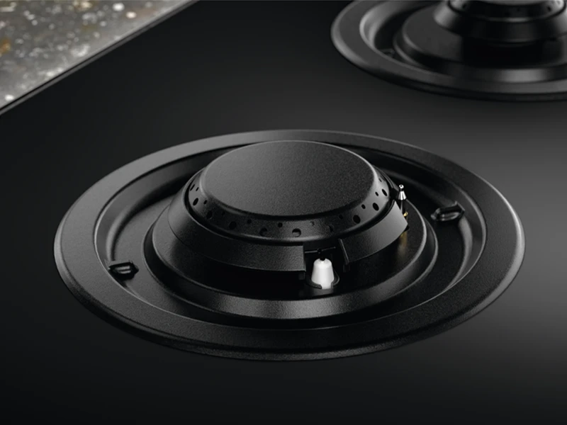 Матово-чорні конфорки з вертикальним пламенем заощаджують до 20% енергії за рахунок швидкого нагріву і їх можна мити у посудомийній машині. Точне полумя нагріває тільки сковороду, яку ви використовуєте для більшої ефективності.