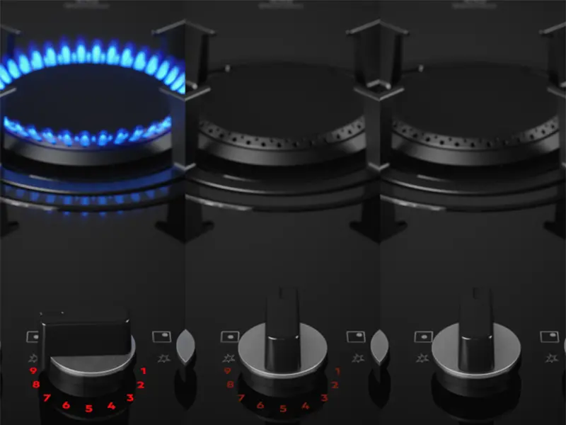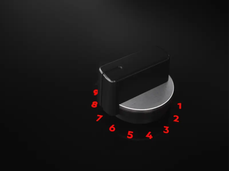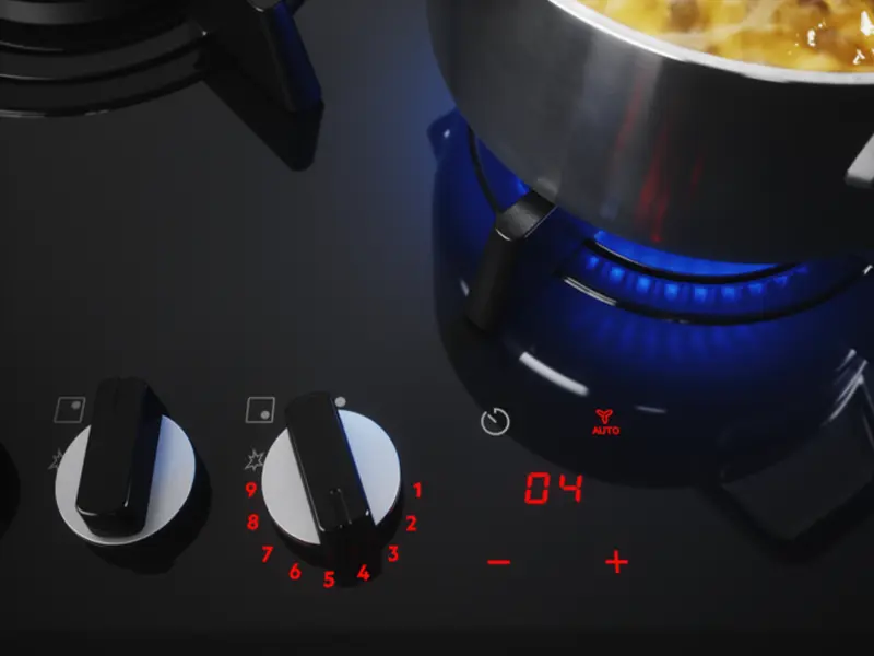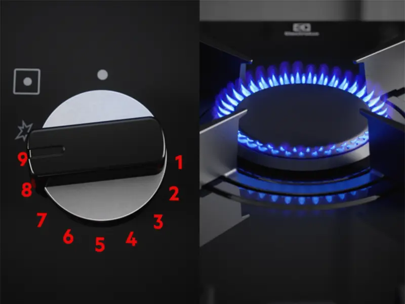 Контролюйте рівень потужності за допомогою яскравих світлодіодних індикаторів FlameLight. Їхня яскравість дозволяє легко побачити та вибирати рівень інтенсивності полум'я від 1 до 9. FlameLight також дозволяє дізнатися, коли конфорка вимкнена або увімкнена.