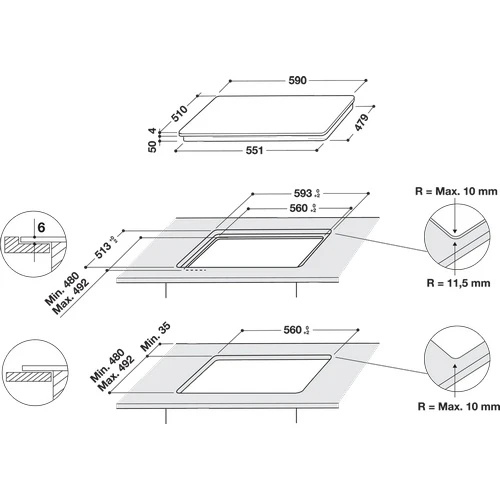 - Розміри для вбудовування 3 x 56 x 48