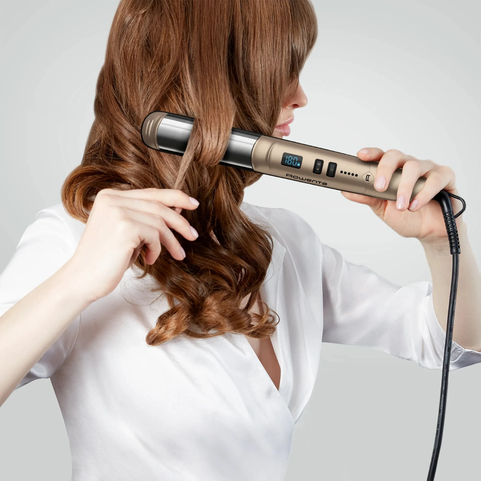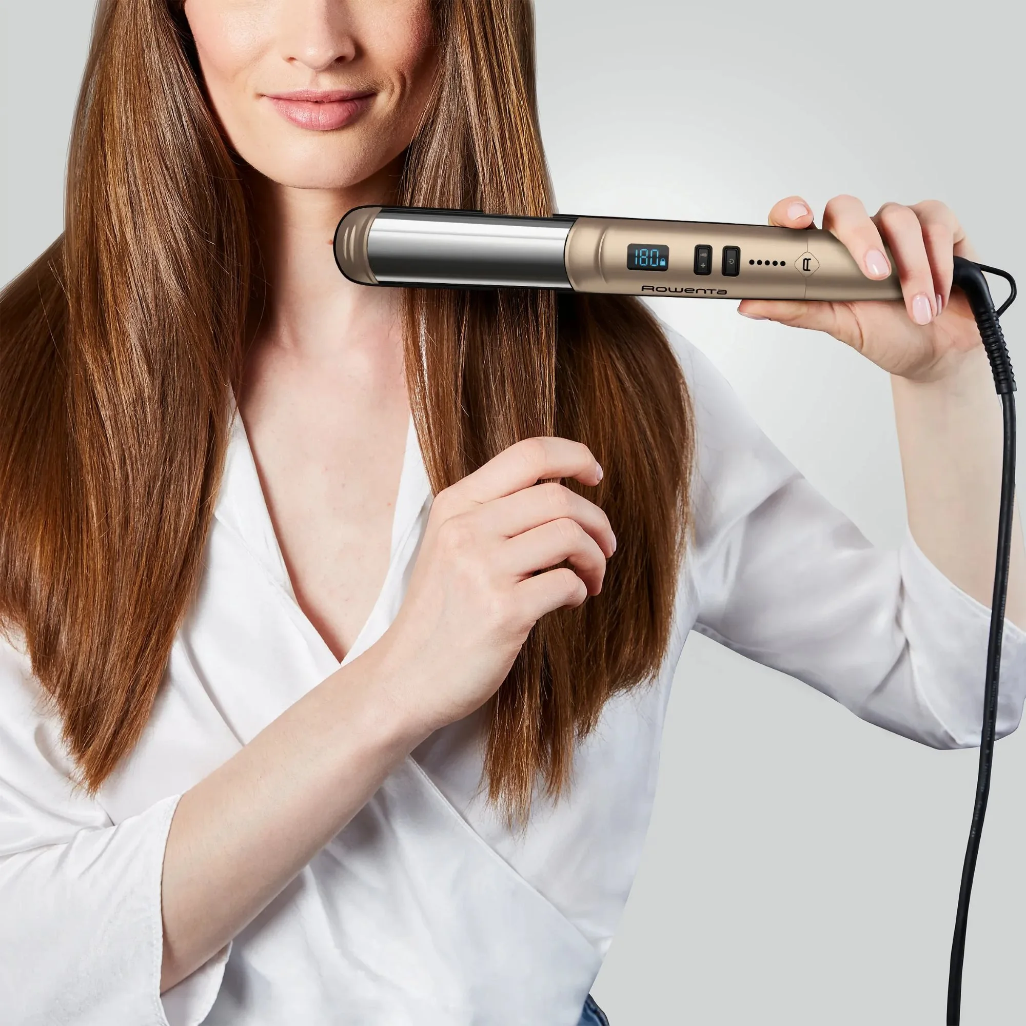 Випрямляч Rowenta Glam & Shine 2в1, темп.режимів-8, 140-210С, дисплей, кераміка, золотий
