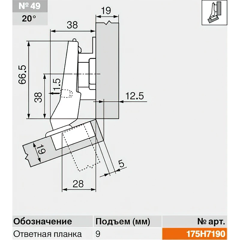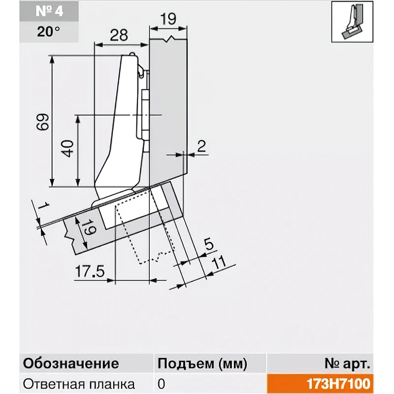 Завіса Blum кутова для ДСП +20⁰ накладна з вбудованим Blumotion 79B9555 MB20+ V50 NI Нікель