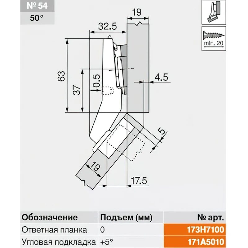 - Кут встановлення завіси 45