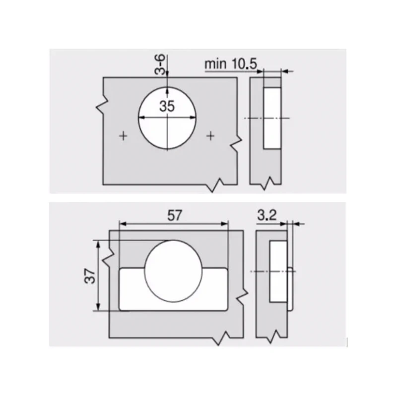 - Глибина свердління чашки 10.5