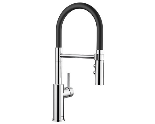Змішувач BLANCO CATRIS-S FLEXO Хром. Виготовляється з високоякісної нержавіючої сталі, що забезпечить довговічність експлуатації. Напівпрофесійний дизайн з елегантними лініями, гнучкий чорний гумовий шлаг забезпечує повну свободу руху, має невелику вистоту за рахунок чого можливе розміщення під навісними шафами. Оснащений виливом з двома режимами: легке перемикання між делікатним душем та потужним струменем. Магнітний тримач забезпечує зручне кріплення виливу.