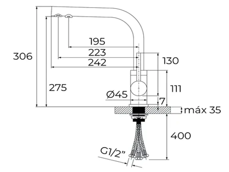 * Підключення 1/2 ” (гнучкі сталеві шланги)