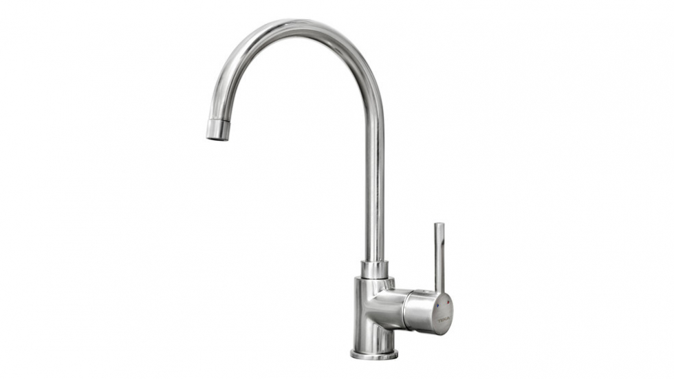 Одноважільний кухонний змішувач Teka SP 995 I (55995020I) нержавіюча сталь з поворотним виливом, важелем збоку та аератором із захистом від утворення накипу.
