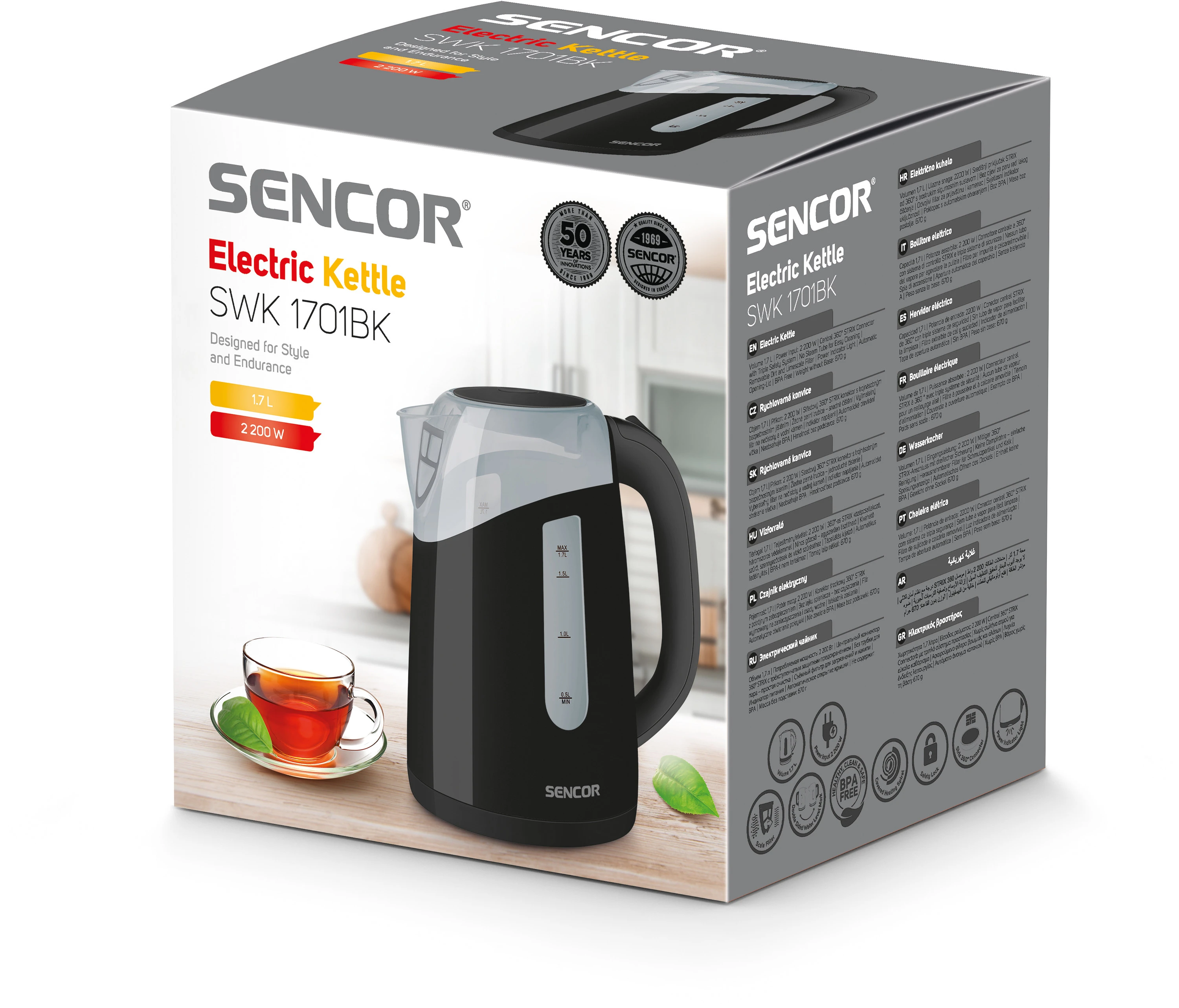 Електрочайник Sencor 1.7л, Strix, пластик, чорний