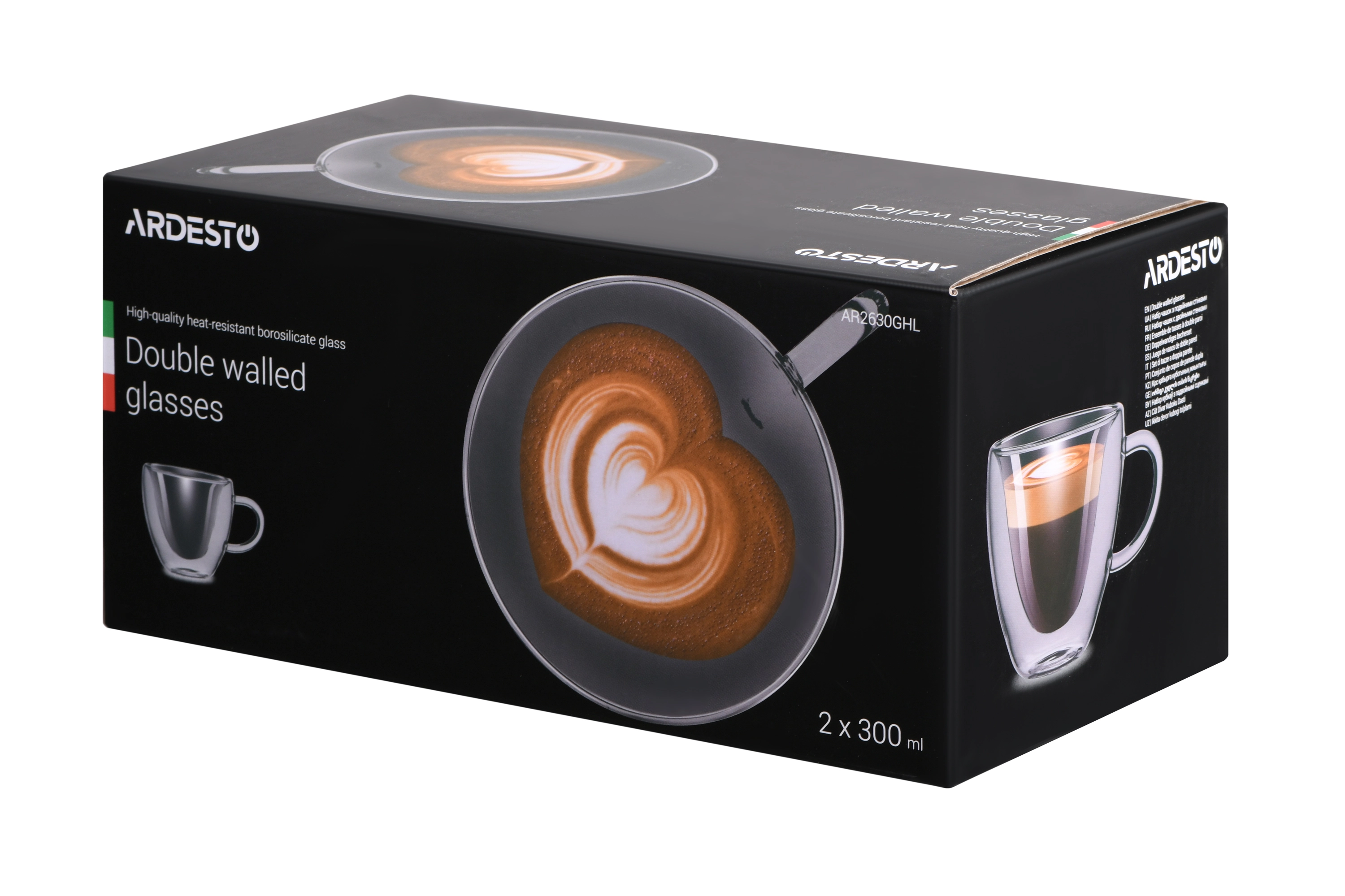 Набір чашок з ручками з подвійними стінками Ardesto, 300мл, 9.5см, 2шт, боросилікатне скло, прозорий