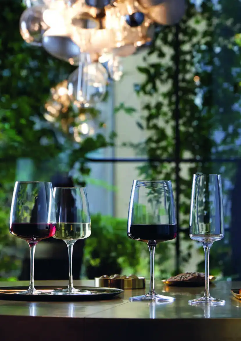 Ці келихи є частиною колекції Nexo, що відрізняється сучасним дизайном і витонченим стилем для модних просторів. Завдяки своїм технічним особливостям Nexo задовольняє потреби найкваліфікованіших фахівців індустрії гостинності. Ця модель, на якій показана чаша витонченої квадратної форми, має ємність 380 мл. Вона була розроблена для сервірування тихих білих вин. Виріб можна мити в посудомийній машині.