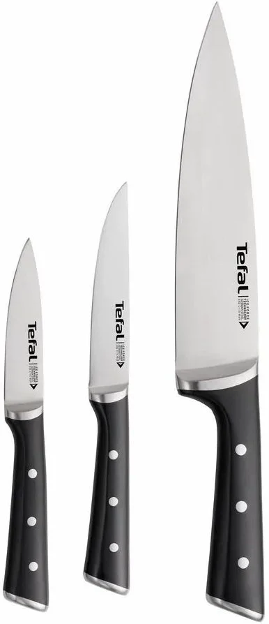 Набір ножів Tefal Ice Force, 3шт, нержавіюча сталь, пластик, чорний