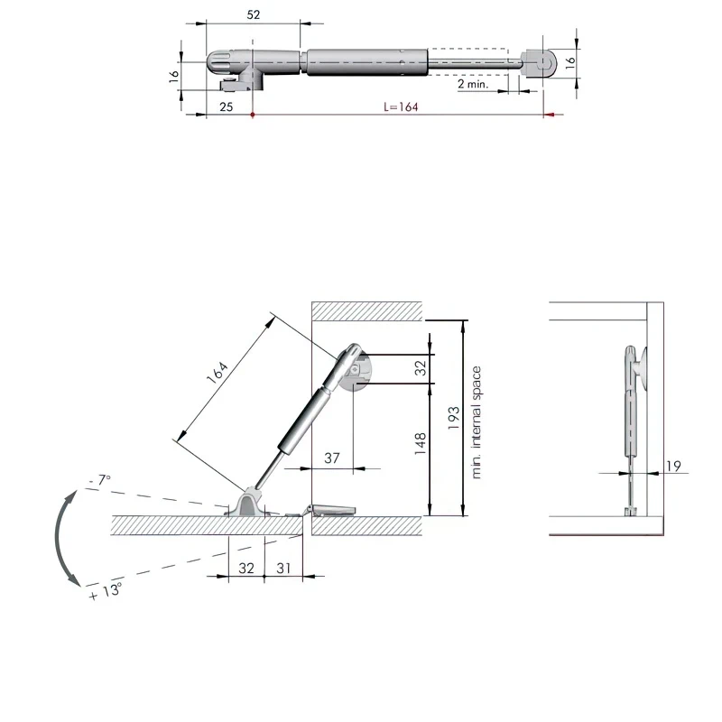 Легкая установка: Газовый лифт KRABY устанавливается быстро и просто, обеспечивая надежное и элегантное решение для современной мебели.