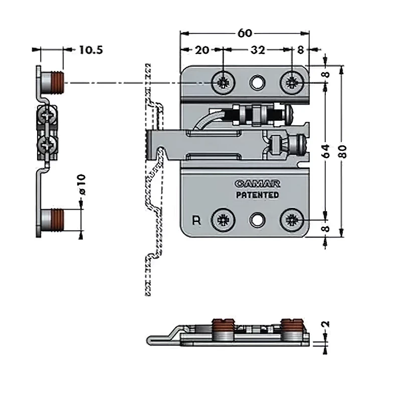Подвес под запрессовку с фиксацией от опрокидывания нескрываемый CAMAR 807.02.Z1.IN.DX правый 120кг