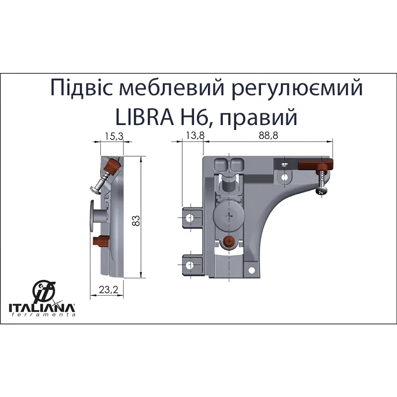Подвес регулируемый Italiana Ferramenta Libra H6 (до 240кг на пару) Правый