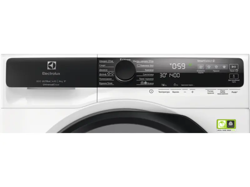 UltraQuick 59 хв - це більш енергоефективна, потужна програма, оптимізована для щоденних навантажень. За низьких температур (30 °C) і за коротку годину (59 хв) програма забезпечує видалення плям навіть для завантаження, яке включає вироби з бавовни та синтетики.
