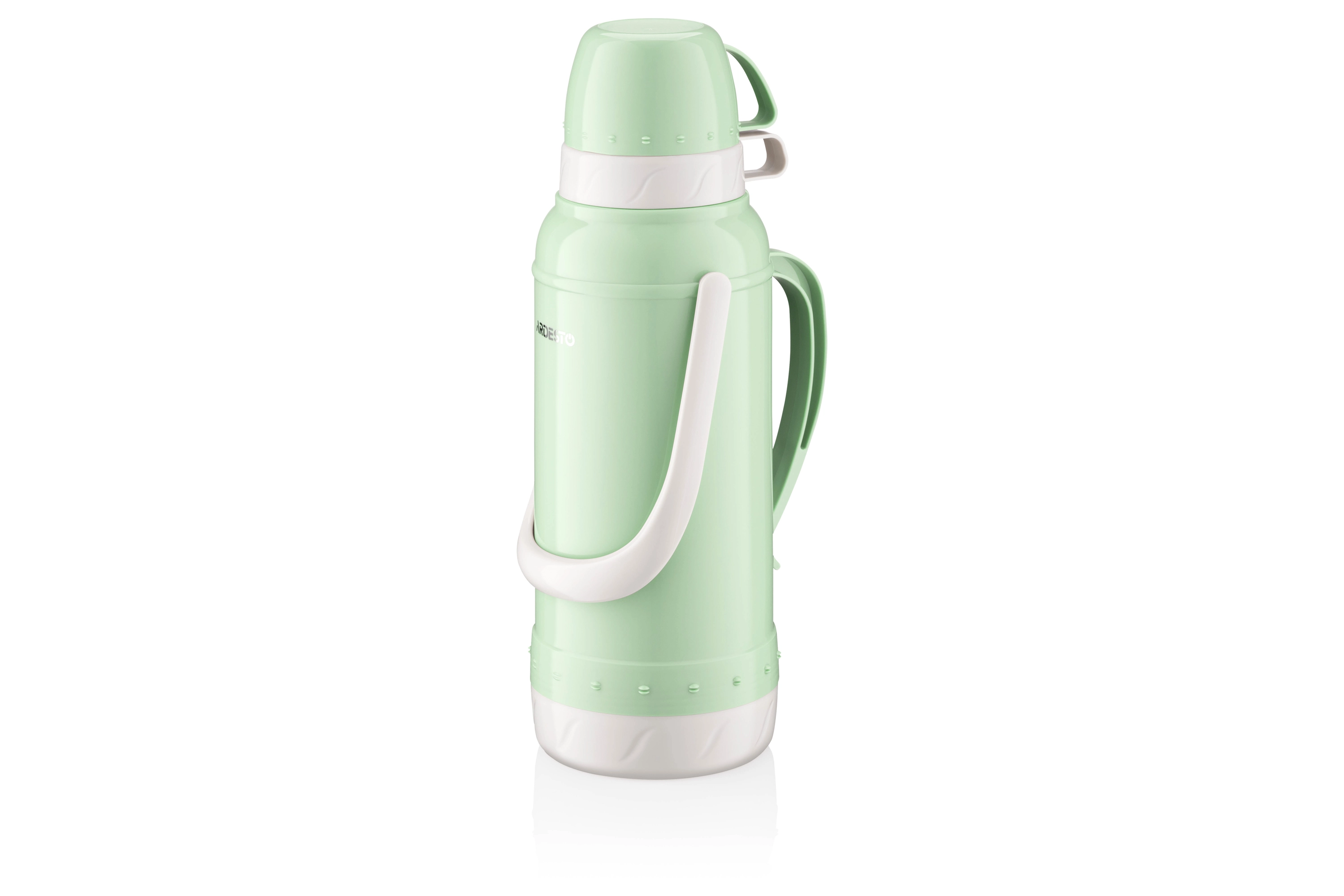 Термос ARDESTO Gemini Gourmet виготовлено з пластику зеленого кольору. Об’єм становить 2 000 мл. У комплекті 2 чашки. Скляна колба добре утримує тепло, не поглинає сторонніх запахів і не вступає в реакцію з продуктами. Термос оснащено кришкою з різьбою, що щільно прилягає, унеможливлюючи протікання та зберігаючи температуру гарячого та холодного напою 24 год. Догляд за посудом нескладний, проте мити в посудомийній машині не можна.