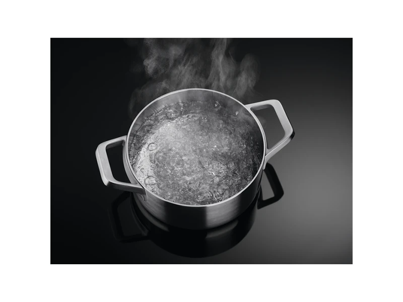 Функція Hob2Hood® з'єднує варильну панель та витяжку. Витяжка автоматично регулює швидкість вентилятора в залежності від нагрівання, без будь-яких зусиль з вашого боку. Для потужного очищення повітря при жарінні, і тихішої роботи витяжки при кип'ятінні.