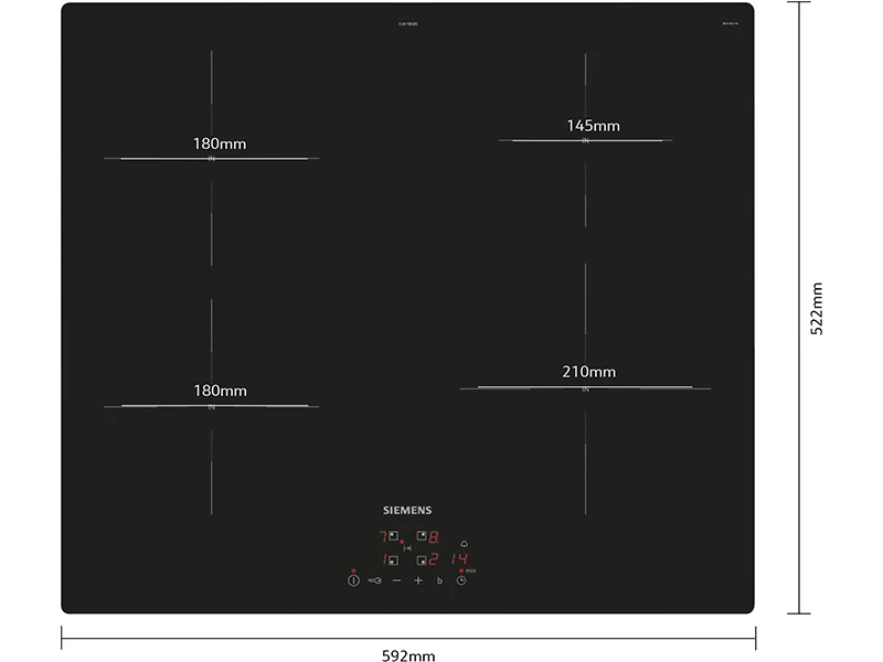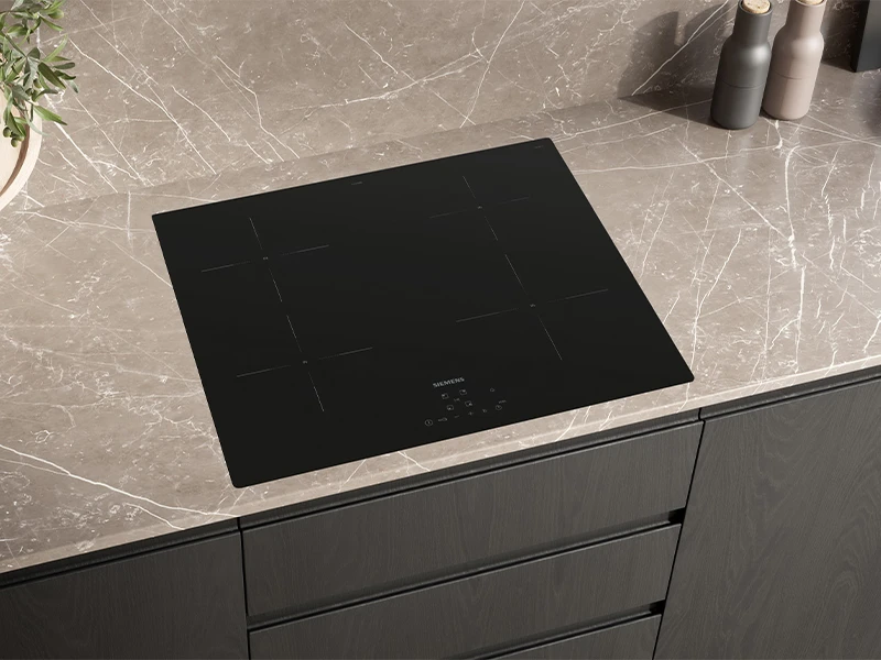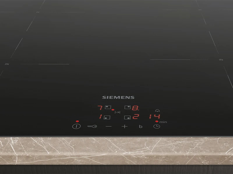 Миттєве нагрівання. Миттєве охолодження. Скористайтеся перевагами індукційної енергії Siemens. Нагрів подається безпосередньо в посудину за допомогою індукційних котушок, без нагрівання варильного поверхні. Для Вас це означає, що час на нагрівання скорочується, підвищується безпека, а варильну поверхню набагато легше чистити.