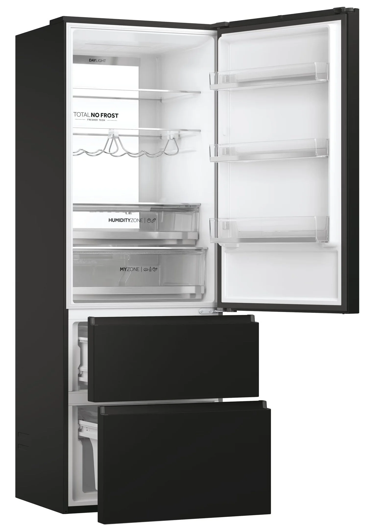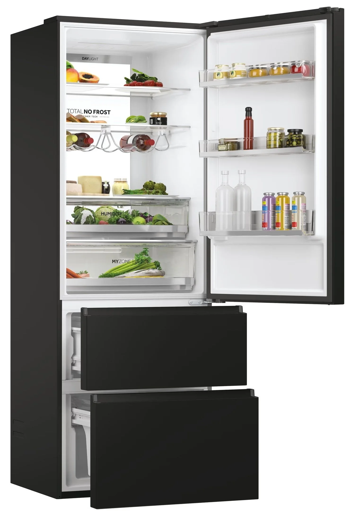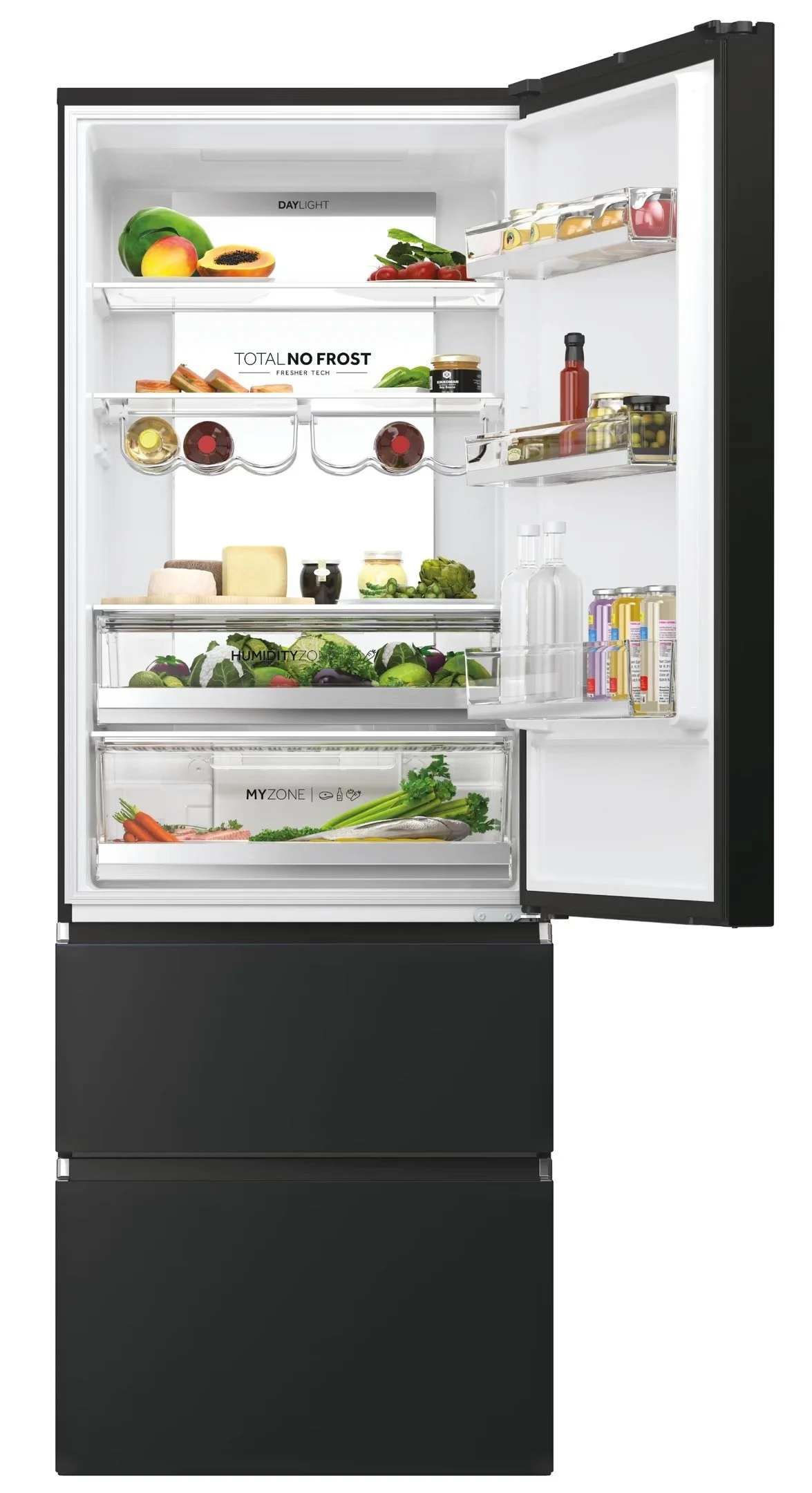 3-дверні холодильники Haier шириною 70 см мають вражаюче продуману систему морозильних ящиків, яка не лише ефективніше використовує простір, але й забезпечує швидкий доступ до всієї морозильної камери, заощаджуючи до 60% більше енергії порівняно з аналогічними холодильниками з нижнім розташуванням морозильної камери. Тим часом, технологія Fresher Techs постійно регулює умови у вашому холодильнику, щоб забезпечити довше збереження якості продуктів. Холодильники Haier 3D 70 Series 7 гарантують відмінне збереження продуктів завдяки спеціалізованим зонам, а також іншим рішенням у холодильній та морозильній камерах.