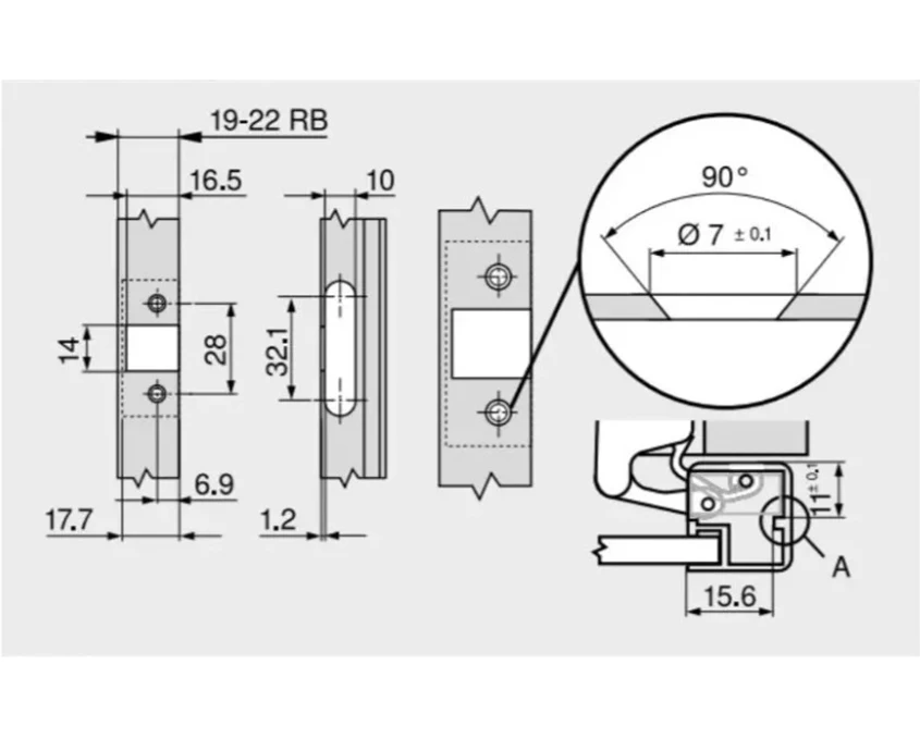 - Угол установки петли 90